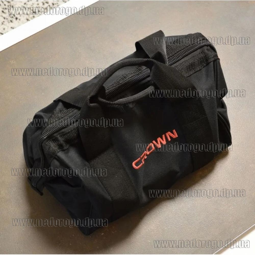 Фрезер Краун с двумя сменными цангами, параллельный упор и 3 сменные базы поставляются в прочной сумке, в которую помещаются сам инструмент, а также все необходимые аксессуары к нему - практичной удобной для транспортировки и хранения инструмента и принадлежностей