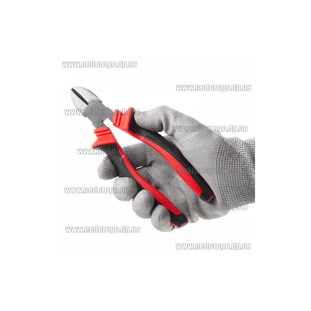 Губки кусачок щільно змикаються, немає жодних люфтів під час роботи. Різальні крайки виточені з високою точністю для якісного зрізу та повного відтинання дроту. З'єднувальний шарнір надійний та забезпечує плавний хід.